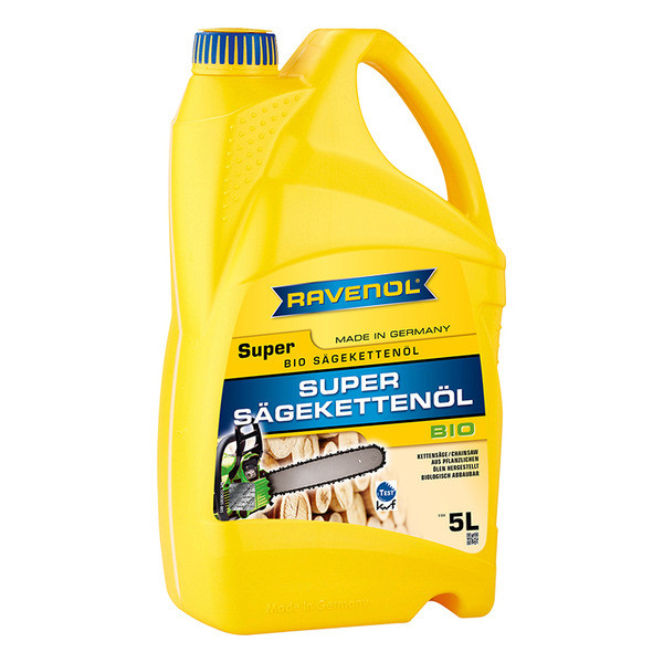 RAVENOL Super Sägekettenoel – жогорку тазаланган рапс май базасында атайын кошулмалар комплекси менен даярдалган, чынжыр майлары үчүн талаптарга жана "Blauer Engel" жана EU Ecolabel экостандарттарына жооп берген биотыгыз май. KWF сыноосунан ийгиликтүү өткөн.
